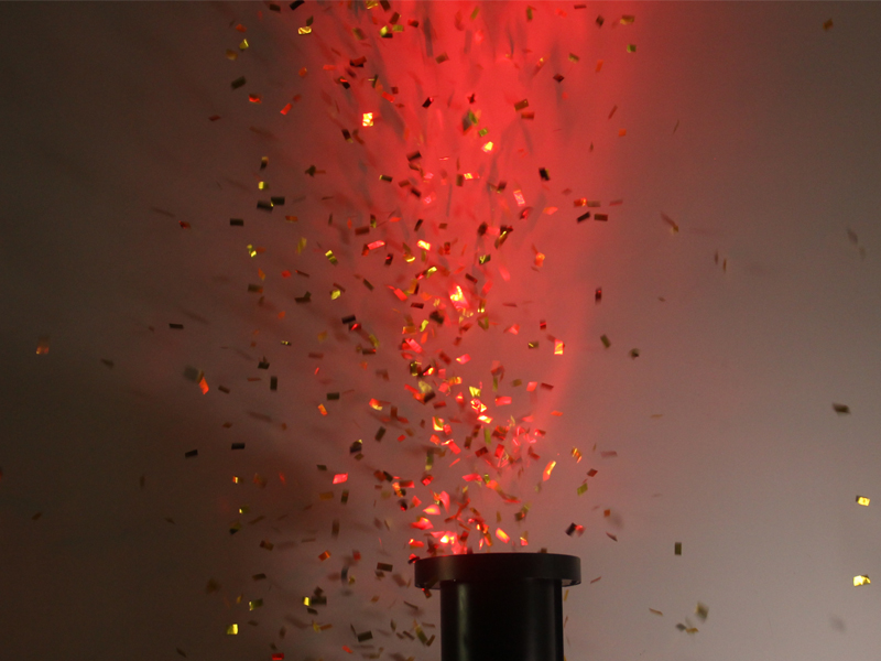 風(fēng)力驅(qū)動(dòng)型機(jī)器,于機(jī)器內(nèi)放置亮片或特殊彩紙作為內(nèi)容物,機(jī)器將內(nèi)容物送上空中的同時(shí)LED多彩燈珠配合照射,星光熠熠,炫麗驚艷非常。適用于中小型演出及中小型慶典活動(dòng)應(yīng)用。
